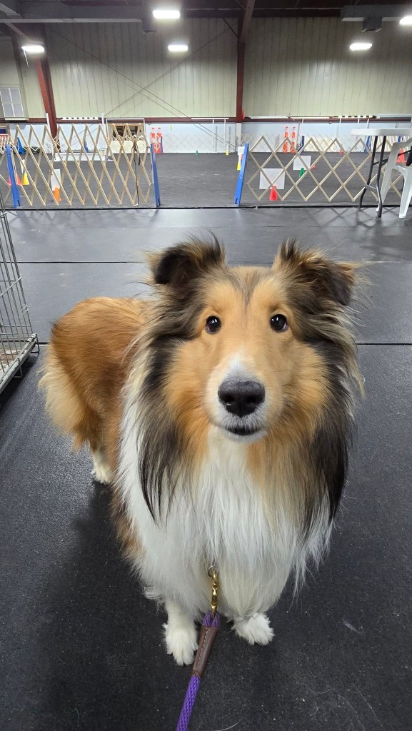 She did four runs on Saturday, 2 of them off leash. We’re still working on specific stuff, especially the no treats in the ring thing, but we both had fun. It felt good to get out together.
