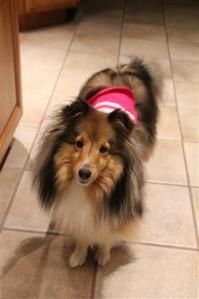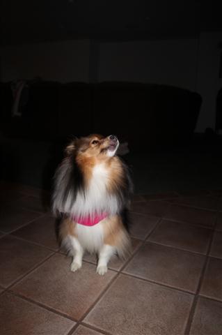 Reilly just tends to sleep through thunder/storms not much phases him other then the 12 o’clock tornado siren test and BAGPIPES ! Katie does look cute in her ink jacket – love the way her fur sticks out 🙂
