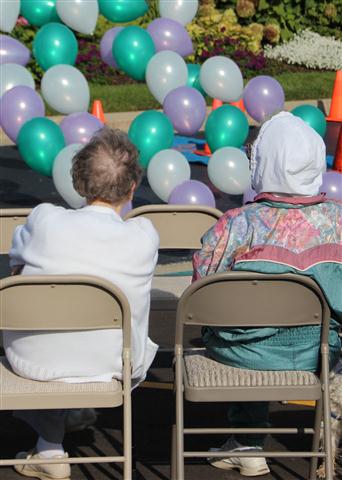 While the runners were out on the course, the residents of the assisted living facility did their own walk around the grounds and then crossed the finish line themselves…