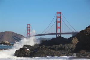 Oh! You’ve got to frame the first picture of the bridge. Love that wave breaking on the rocks with the bridge in the background!