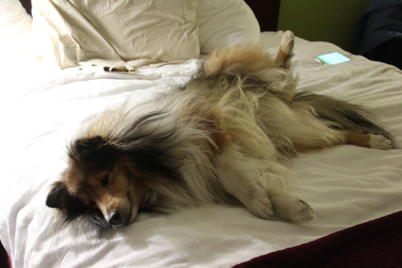 Katie here with the last post of my big adventure. Mama did the math (cause my toes don’t work very well on those little calculator keys) — we drove 5,842 miles! And I got to go on every one of ’em! You could say I am a well traveled sheltie-girl.