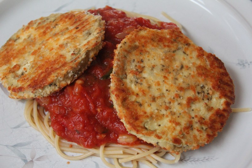 Tonight I made eggplant parmesan. It was supposed to be vegan, but I used real parmesan cheese and cow’s milk, so it was only vegetarian. I have to say, it was better than any eggplant parmesan I’ve had in any restaurant. I’ll make it again for sure.