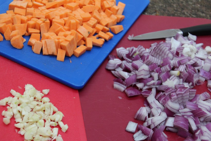 I gave you the recipe. 🙂 Will email it to you again with some better explanations. Too bad you didn’t use chipotle. It really jazzes it up with a nice, smokey flavor. 🙂 Chipotles in adobo sauce can be found in with the Mexican/International foods. If you make this again, forget chipotle powder (which is harder to find) and go for the canned chipotles in adobo sauce. You’ll only need one chipotle (which is a smoke jalapeno pepper, by the way). Cut one in half, remove the seeds (that’s where all the heat is), and chop it up. Add when you’re sauteeing the onions and sweet potatoes.
