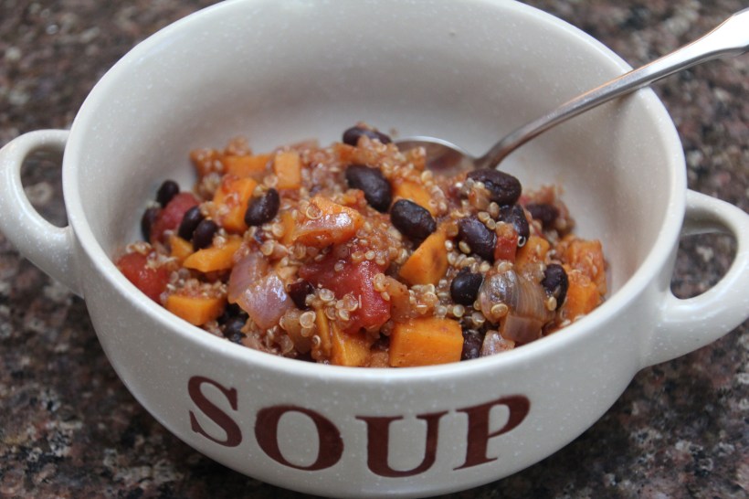 One of you, I’m unsure who, gave me a recipe for sweet potato and black bean chili. It was a long time ago, long before the latest trip, maybe even before my adventures in Florida and Alabama.