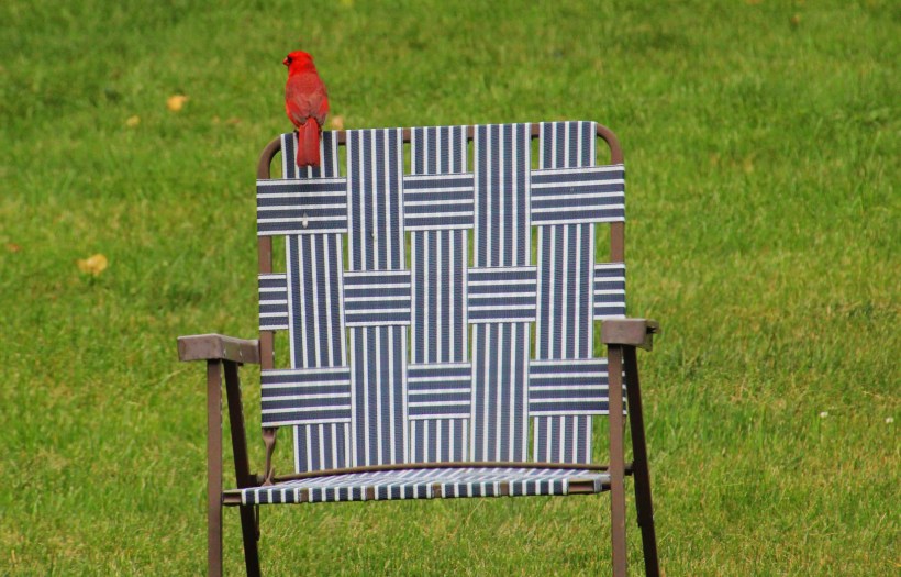 • For sure. The chair was out in the yard because I had been sitting there trying to get a good shot of the orioles (failed, but it was wroth a try)…and when I left the cardinal decided it was a good vantage point to peruse the yard. I guess.