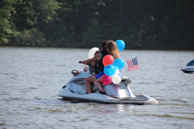I was extra lucky. I was in the South, on a lake that just happens to have some very patriotic water lovers. Every July on the 4th a huge community of jet skies and boats circles part of the lake at full speed.