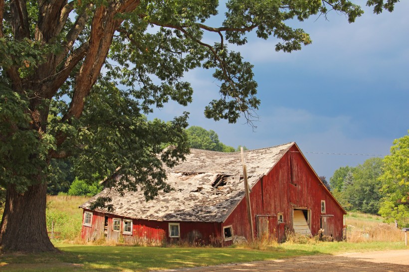 So much drama in the skies. I also love the sunken red barn – kind of a nostalgic scene.