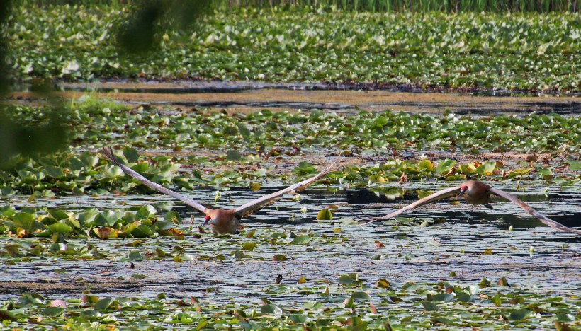 I kept shooting, but it was hard to see them against the busy backdrop of the lily pads on the lake.