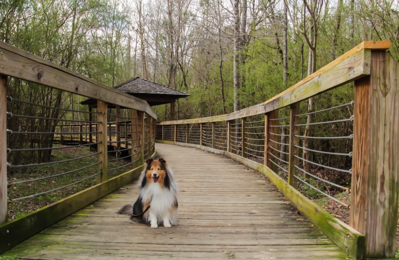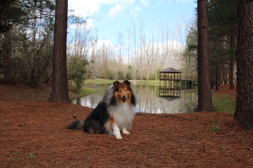 It’s called Town Creek Park and it’s in Auburn Alabama. It’s a little park, but really pretty. We liked it a lot last year, and we explored even more this year. There’s a trail that goes off through the woods and because it was sort of hot here yesterday mama took me on that first, so that I’d have shade.
