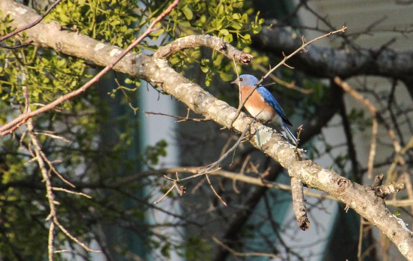 Today I’ll focus on the bluebirds that are flitting around all over around here. There’s nothing happier than a bluebird, and when you catch that glint of intense blue you just have to smile.