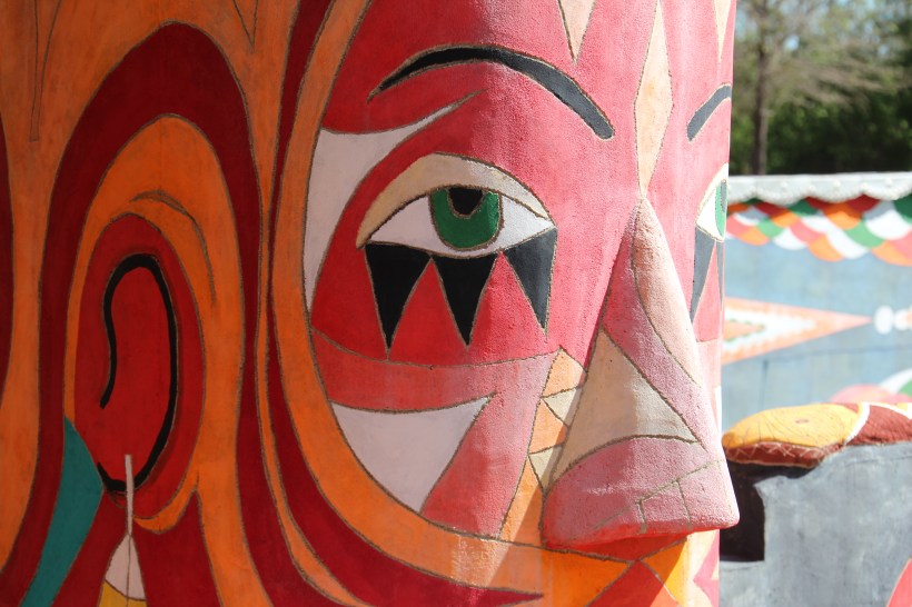 Saturday morning, my Gotcha Day, my Uncle and my Aunt and mama and I went to a very interesting art compound about an hour south of Columbus Georgia. It’s called Pasaquan, and it was built by a hippie kinda guy back in the 70s. (Mama says don’t say back in the 70s cause according to her that was just a couple years ago. Whatever mama.) You can hear him talk about it if you go to the link above. You can also google it and find out more. It’s been restored and is supported by Columbus State University and the Kohler Foundation.
