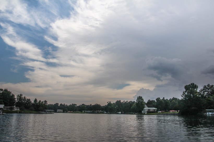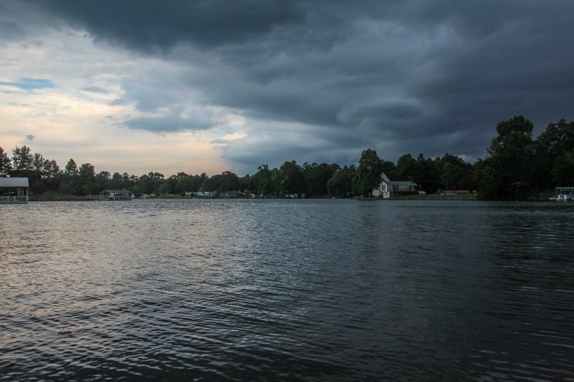 A cool thing about being on a lake is that it’s always changing. From moment to moment the light changes, the wind ruffles the surface, a fish jumps, a bird swoops, clouds gather, thunder threatens.