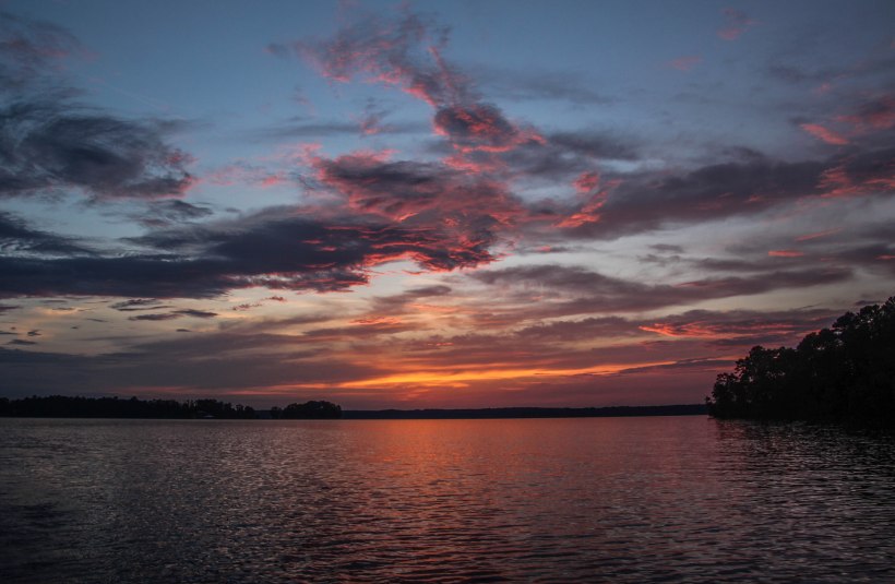 I love watching sunsets over water, the color of the sky is amazing. No words needed, indeed.