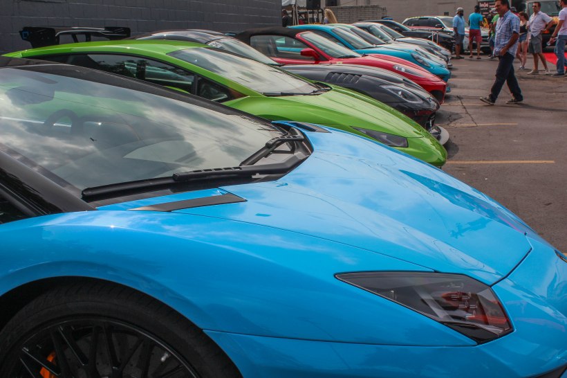 The streets are lined with people who enjoy watching the beautiful cars go by. Parking lots are filled with more of the vehicles.