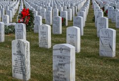 34 December 19, 2018 by dawnkinster Leave a comment ← Previous Image Next Image → A wreath stands among the white headstones.