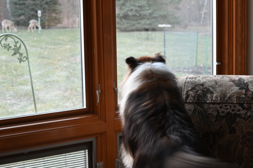 She barked a lot and they pretty much just looked at her. You can see them thinking about her, and I think they have her number…. “Silly little noisemaker but not dangerous.”