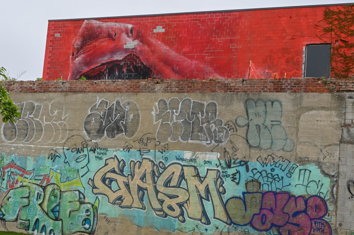 13 May 19, 2019 by dawnkinster Leave a comment ← Previous Image Next Image → A building up at street level had this great red shark looming over the walk.