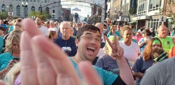 They had the start area sectioned off for people who ran different speeds. Two of my friends and I went to wait in our section, very near the back of the pack based on our projections of a slow finish time.