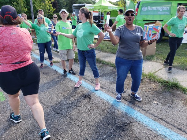 But all I ever took was water. Even though it was still very cool for August I knew I had to keep drinking water. I tried to take cups of water from the kids that were handing them out, they got such a kick out of passing them out.