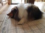 She doesn’t want to go out back to her pen, a place she enjoys these days before things get to hot out there in the coming weeks. She wants to go out, but not to go out, if you know what I mean. I attempt, a second time, to take her out to her pen and she detours to the folding chairs on the other end of the deck.