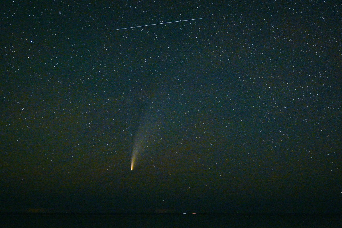 DSC_5995-8 July 22, 2020 by dawnkinster Leave a comment ← Previous Image Next Image → As the comet was fading I captured either a shooting star, or more likely, the space station sliding across the sky.
