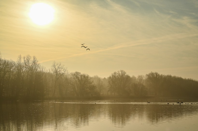 The sun was up by the time I got out to the park, but the fog off the lake was still hanging around.