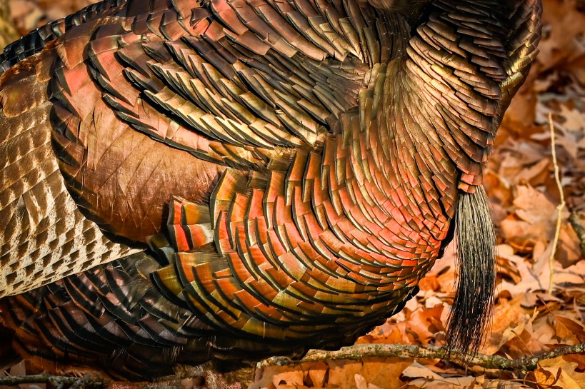 You take amazing pictures. I love the coloration of the turkey plumage. Wish I could’ve seen them chase you!