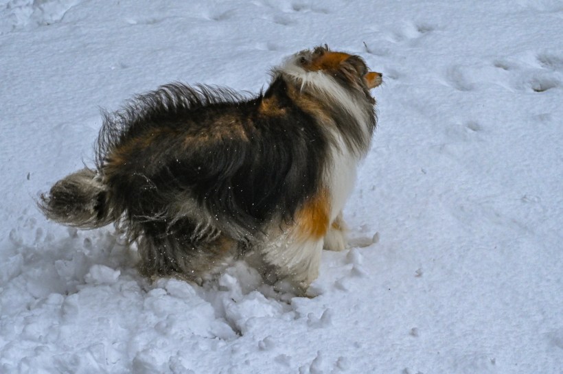 4. The snow looks very pretty, but of course having a sheltie on it turns the scenery into a thing of beauty… And I understand how fun snow can be. I don’t understand sticks, but do know they have to be chewed down to nothing. As to treats, well, I haven’t carried treats with me outside in ages, but my pups think I have them all of the time so check occasionally, just to be 100% sure… Great smiles, Katie.
