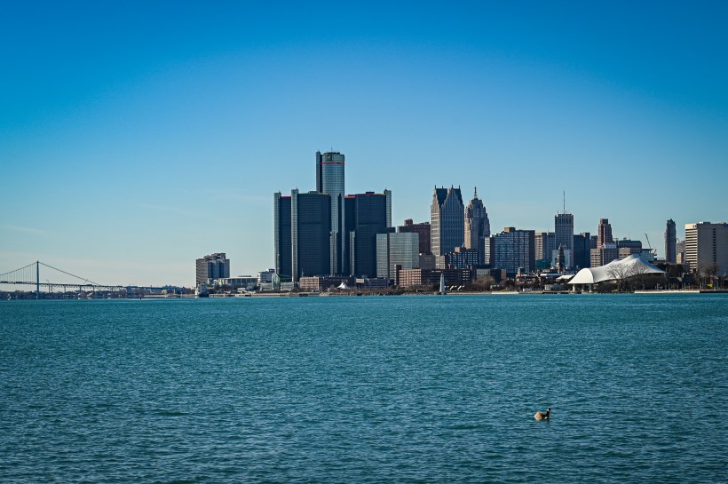 Detroit, with Ambassador Bridge to Windsor on the left.
