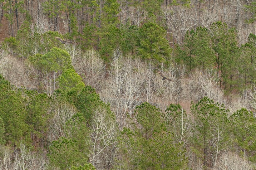 I loved the stripes of green fur trees against the empty limbs of the deciduous trees. Also the two turkey buzzards flying below me.