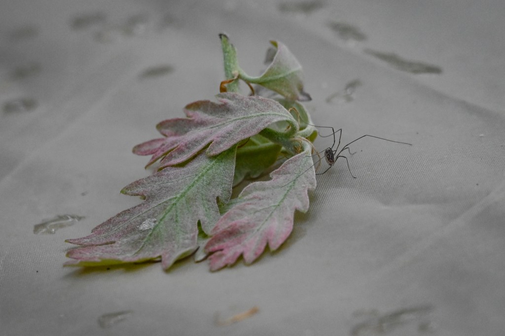 Eek, a Daddy Long Legs!! Sorry, not a fan. But I do like the “frost” on the leaves!