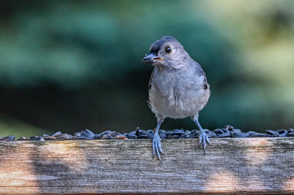 The birds are used to us sitting out here, and they take the calculated risk of coming in for a bit of seed, even though it’s only a few feet from the dog and me.