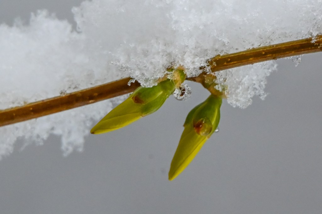 Man, if you guys are still getting snow down “south”–then we may need to wait even longer. I still think the juxtaposition of snow and blooming is beautiful, but it can end anytime. Our forecast for Sunday says 65. But by Tuesday 31. Hmmm….