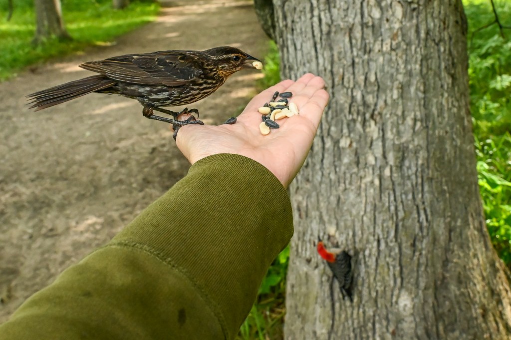 13. Golly, you got a red-winged blackbird to eat from your hand?? Dawn, you really ARE a bird-whisperer!! Thanks for showing us how it can be done. Something tells me, the first time I’d feel tiny sticky bird feet on my open palm, I might squeal a bit though!!