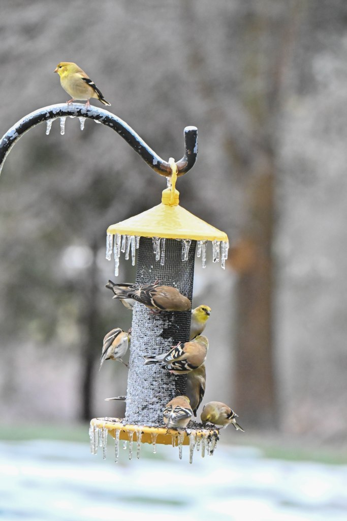 So here you have three books and three sets of young people absorbed in art. Three different stories threaded together with images of my winter goldfinches who, of course, have their own stories to tell.