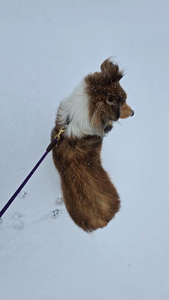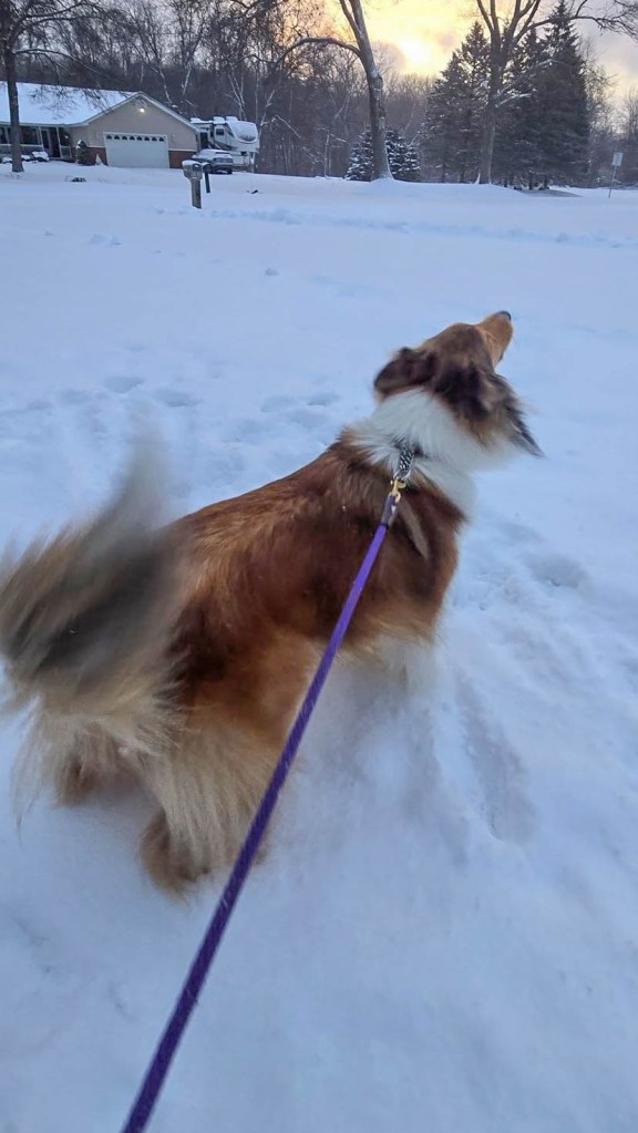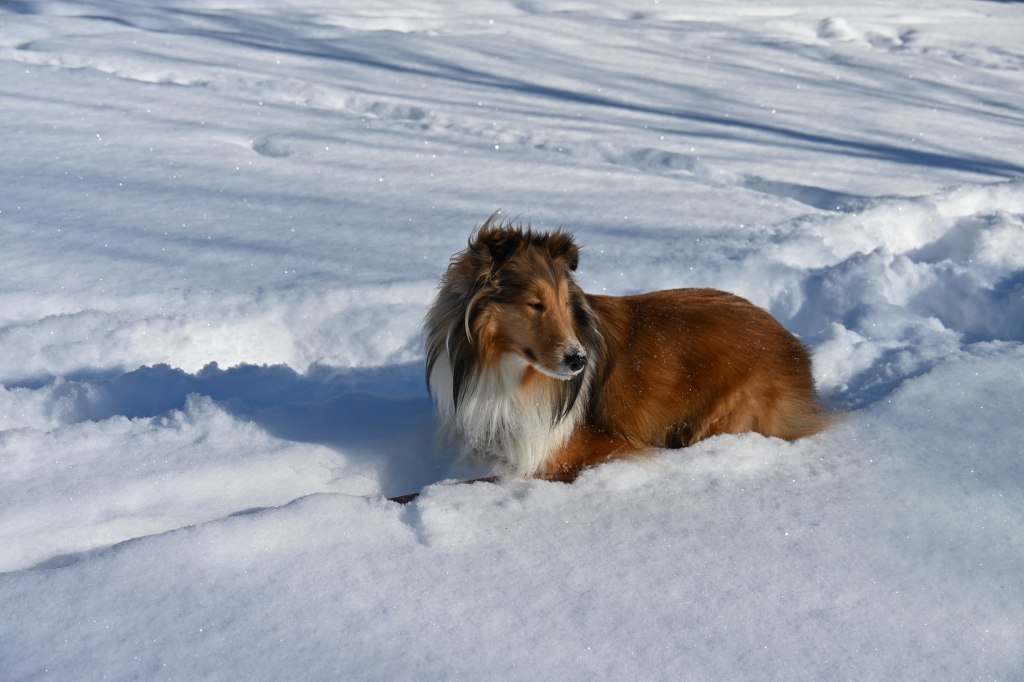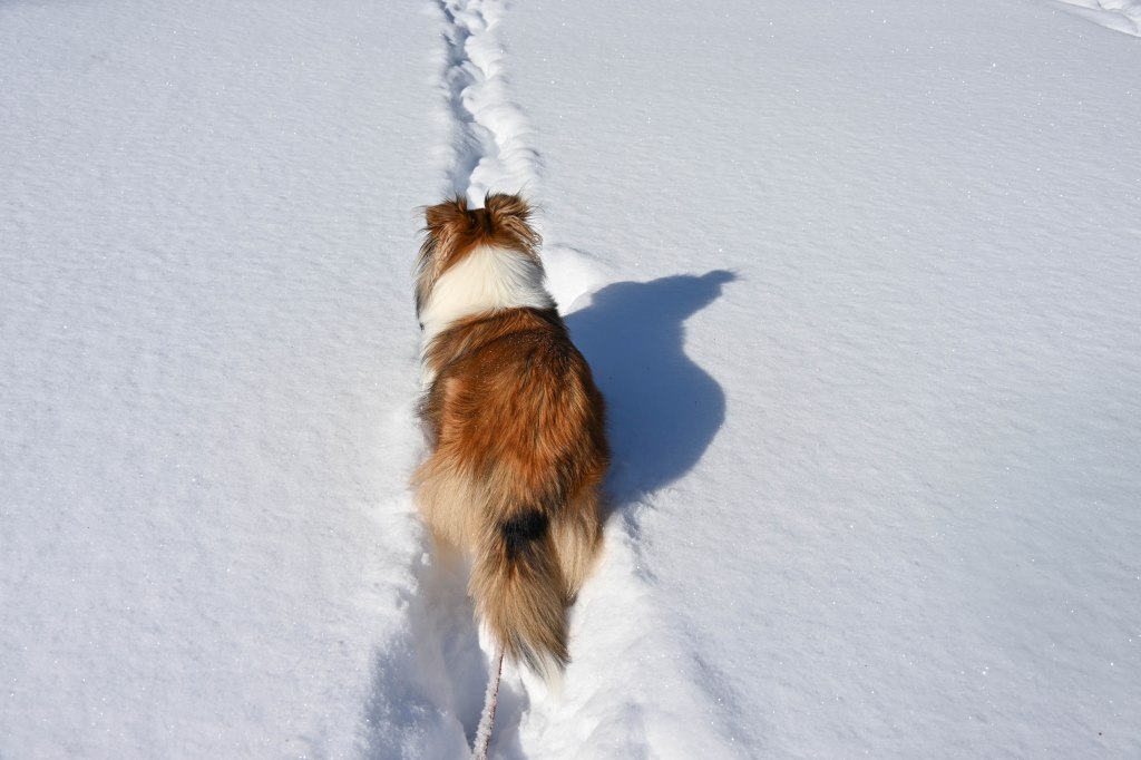I told mom I wasn’t going to run around and chase snowballs when the snow was that deep. Other dogs’ parents dig them a trail in the backyard to run around on. I suggested that to my mom. She looked at me and then we came inside.