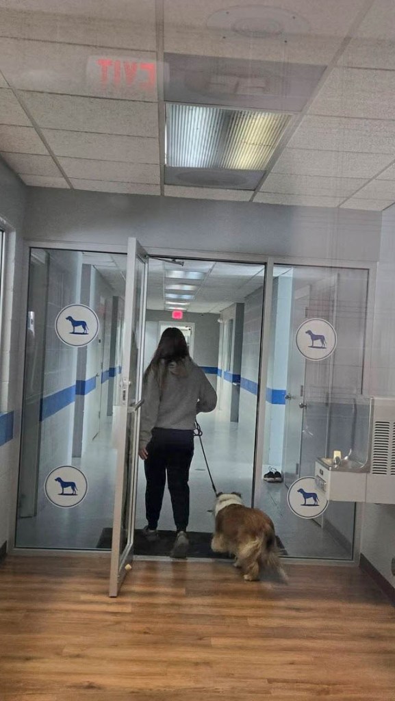 And I ended up at my kennel! What the heck mom! I hadn’t even seen daddy yet! But it’s a nice kennel and I don’t mind being there. I followed the girl to the back without even looking at mom.