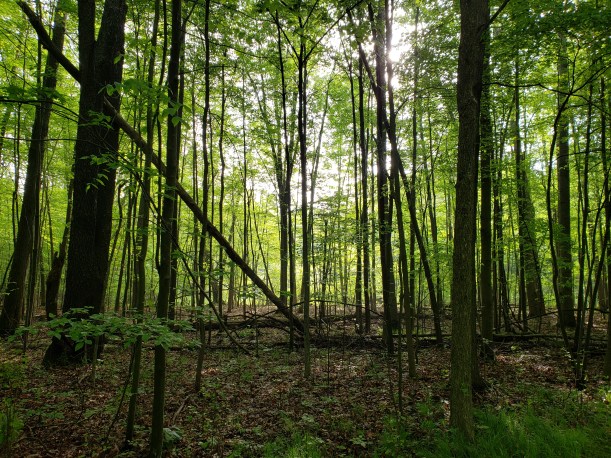 The beginning of mile four goes through some deep woods, one of my favorite parts of this path. Less wet than before, so fewer mosquitoes, but still pretty, and shady for those summer runs. By the end of the mile, though, the woods give way to open meadow with a bit of a breeze that I enjoyed. I had a hard time deciding what to wear this morning, and ended up with shorts and a long sleeve technical shirt. It was a damp 52 when I started my run. Turns out long sleeves were a mistake, I should have worn a tank top even though I feel fat in tank tops.