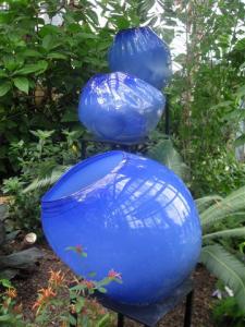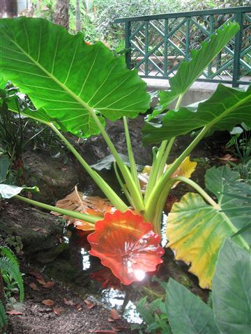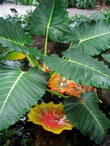 The art glass was mingling among the tropical plants.