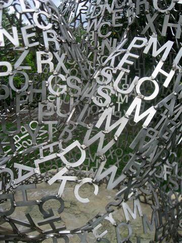 …nor these sculptures, people sitting made out of letters of the alphabet, though I couldn’t find any actual words in the one I studied.