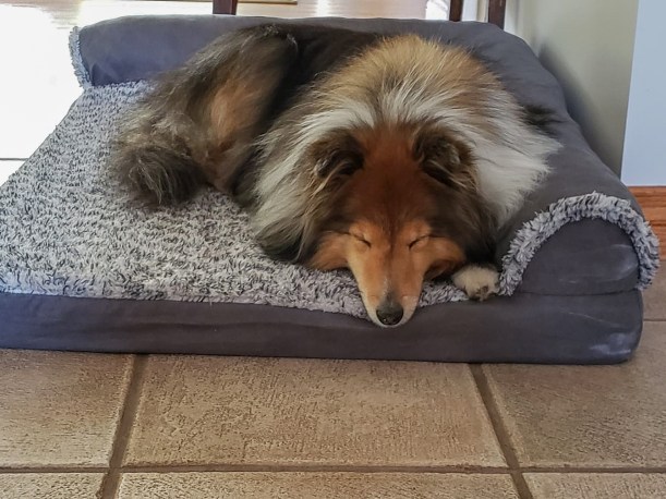 The second day it was going to get pretty warm by the middle of the afternoon, plus they were starting to predict several hours of thunderstorms coming sometime in the evening or overnight. Mama thought about it for a bit and decided she didn’t really want to be trapped in a small tent with a wet dog for several hours. So she took me home to my dad where I got to sleep on my other princess pillow and enjoy the air conditioning.