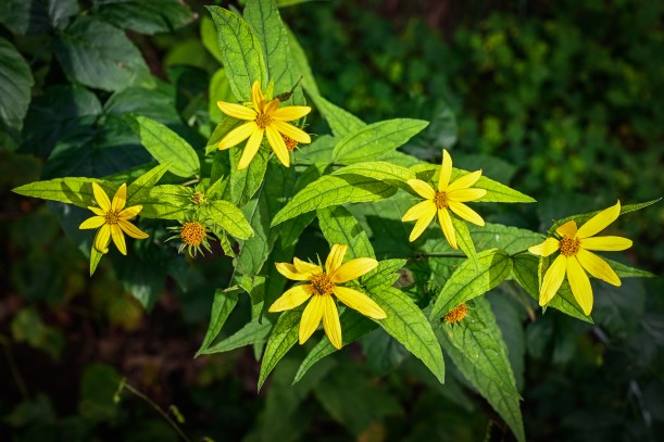 We planted a little ‘wild flower’ garden this spring, and it’s in full bloom now. Lots of pretty blossoms, mostly annuals, reaching for the sky.