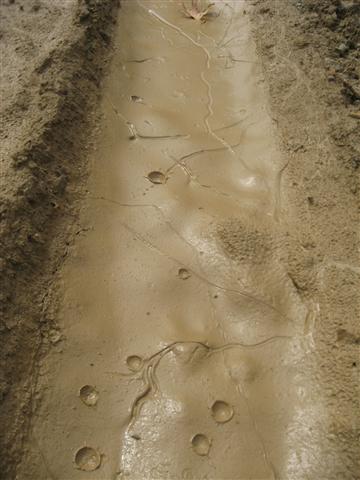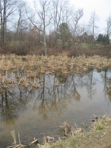 I turn around in town, the end of mile 3, and walk back toward the marsh this time moving on the other side of the road. A bit of water gurgles down the drainage ditch, widening and getting deeper as it gets closer to a stream. At the bottom of the hill small frogs plop from the sides of the ditch landing splat into the water. A chickadee goes through his litany of calls, then hops out to the end of a branch to watch me go by.