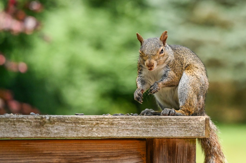Wonder what she’s serving today?The food lady has been a bit slow to serve us lately, I hope I’m not disappointed this morning!Not one of your better offerings, lady. Maybe you should consider expanding the menu.Well I certainly don’t have an issue with the menu!I’m just going to stuff as many seeds into my cheeks as possible….…oops! The lady is OUT HERE ON THE DECK!!!! RUN!!!!!!