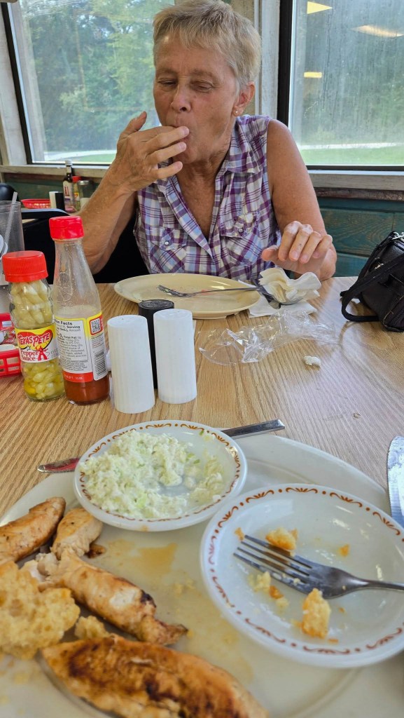 We ended up at a local diner for lunch/dinner. I think people have misconceptions about camping. Yes you can bring all your food with you, and get ice for your cooler every day, or have a camper with a fridge…but you can also go out some of the time…which we have done on previous trips too. It’s a nice break and you often meet interesting people.