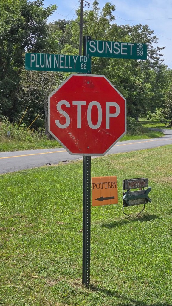 We explored more that day, looking for a local potter who’s sign we had also seen on the main road. After making a couple wrong starts (and almost ending up in a private home accidently) we headed down a beautiful shaded road…