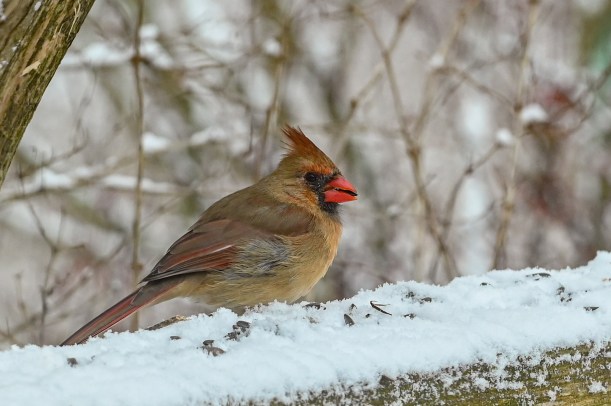 But lucky for them I happened to have quite a bit of seed left in my pocket, seed those pesky turkeys didn’t get. A few little birds came down for a treat. The woodpecker stayed around begging but waited till I left him something on the ground to grab lunch.