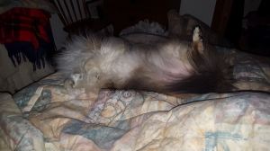 Mom said I was a wimp, but picked me up and we sat at the picnic table while the two youngsters ran around. Then that terrier went right up on the table and landed on mom’s head! Well, mom said that was enough and we left to go home so I could get a birthday nap.