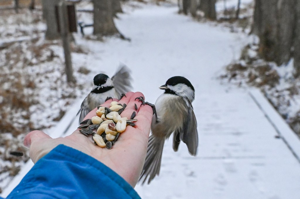 I did get out to feed the birds at Kensington this morning. A lot of the photos in this post are from that visit. I didn’t look at the weather, or even the temperature before I left home when it was still dark. By the time I got to the park the wind was blowing the snow sideways. Not surprisingly no one else was around.