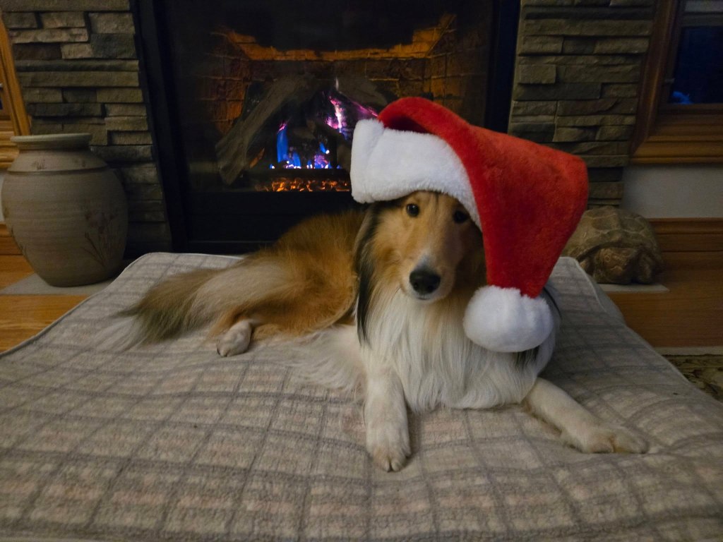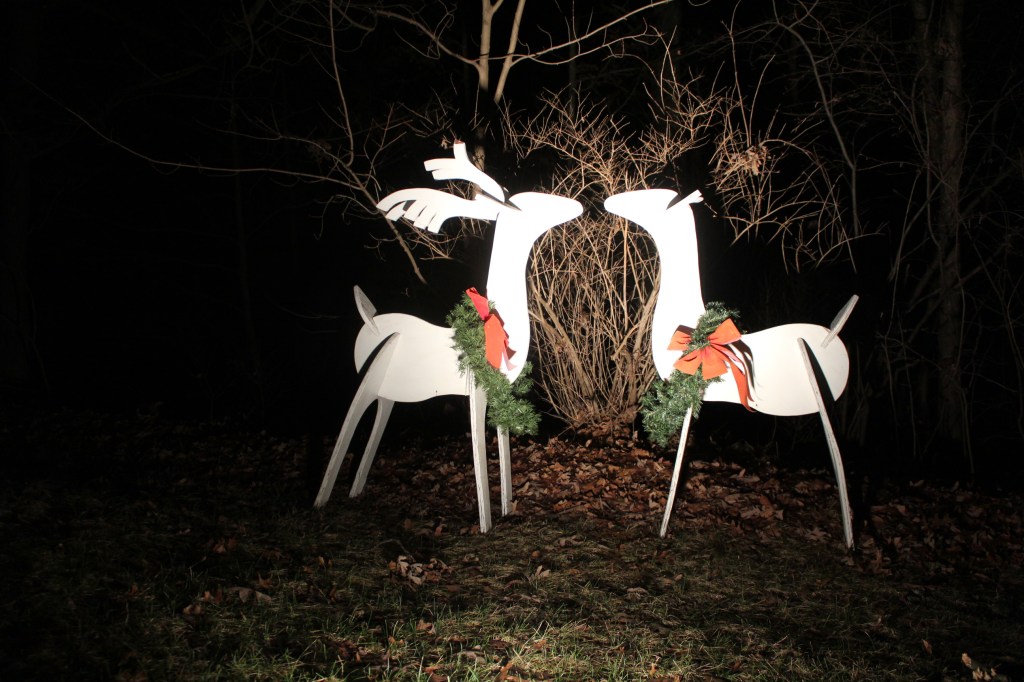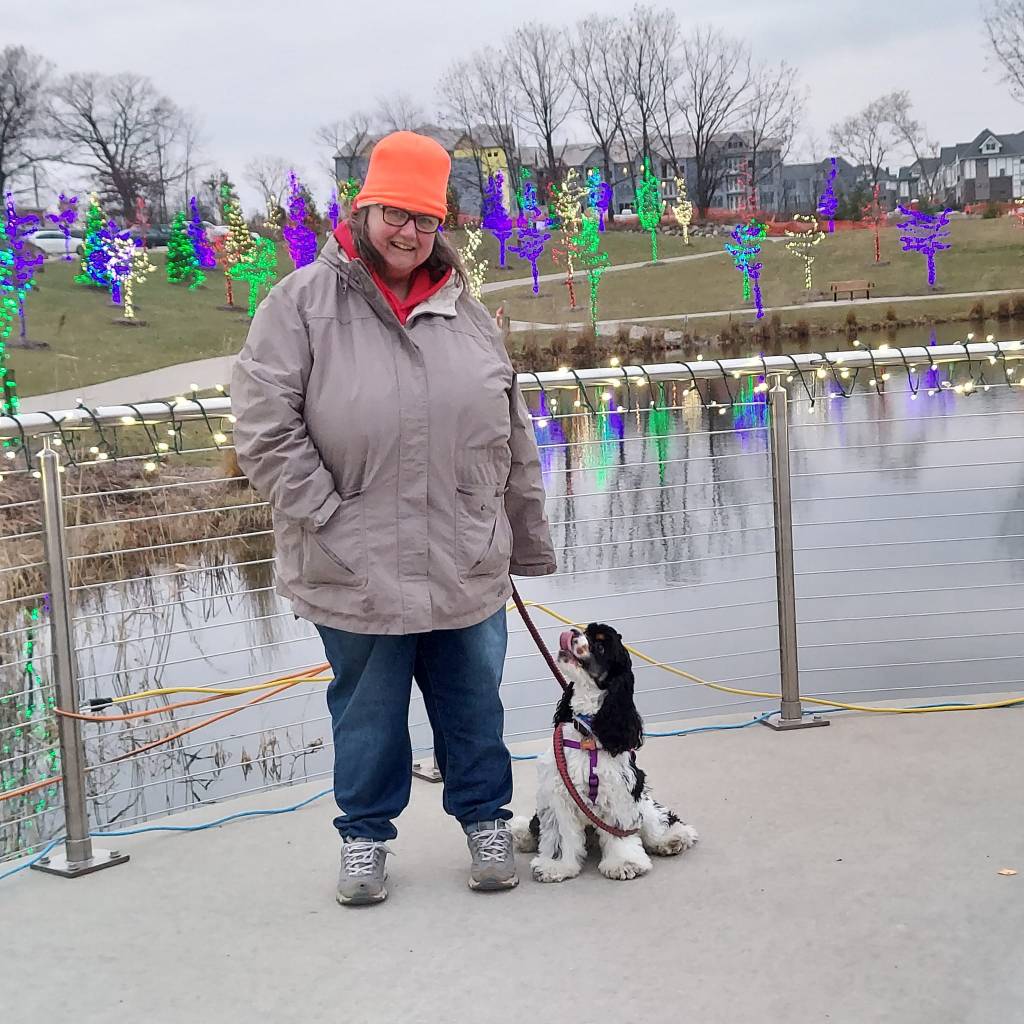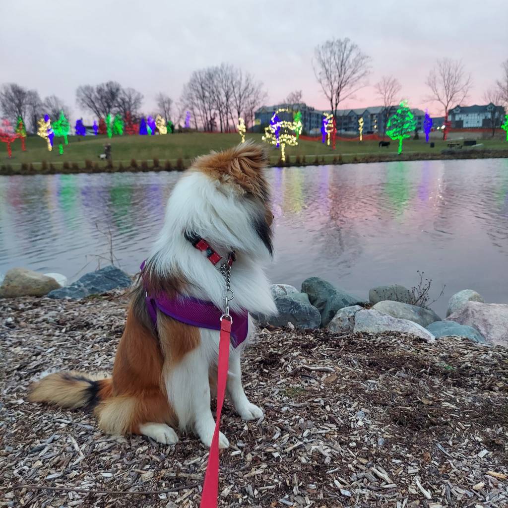 Since it’s the holiday season I guess I should start out with my walk a week or so ago. I got to go to a park with my friend Whisky and his mom. (And my mom came too.) There were Christmas lights everywhere!
